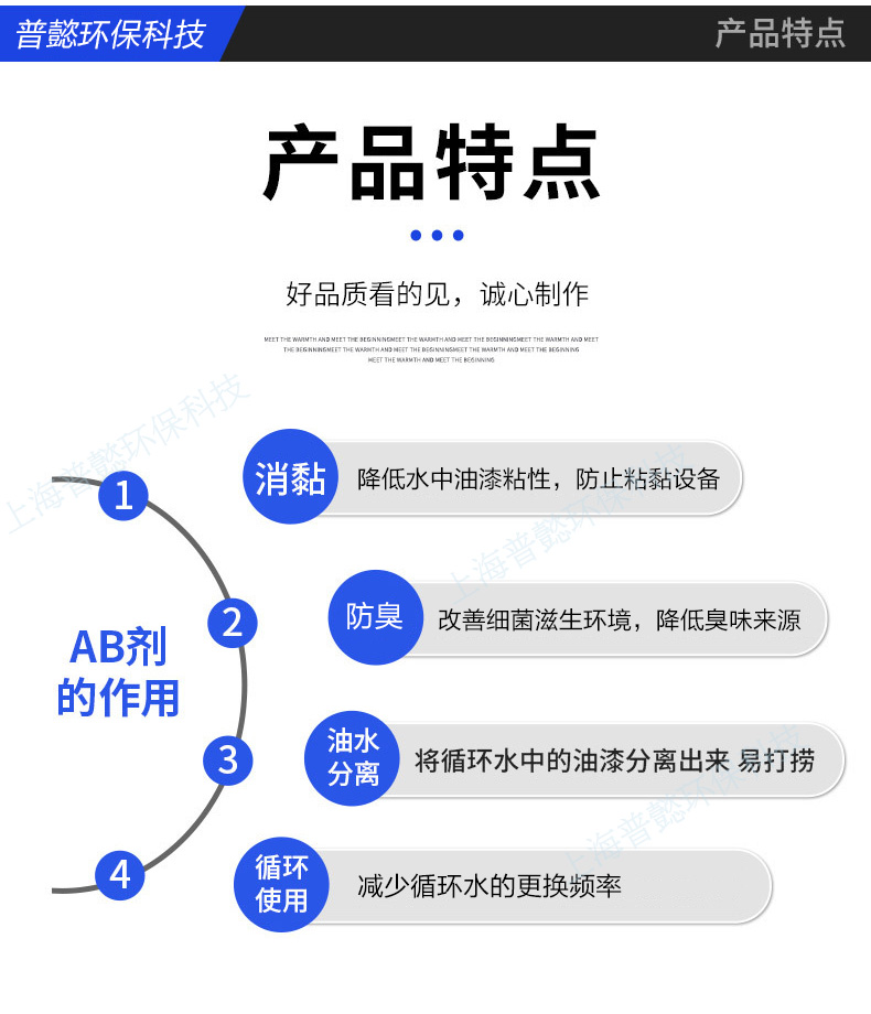 除漆劑AB劑能夠去除水中油漆的粘性,并將已被去除粘性后的油漆漆渣凝聚上浮,利于清除。